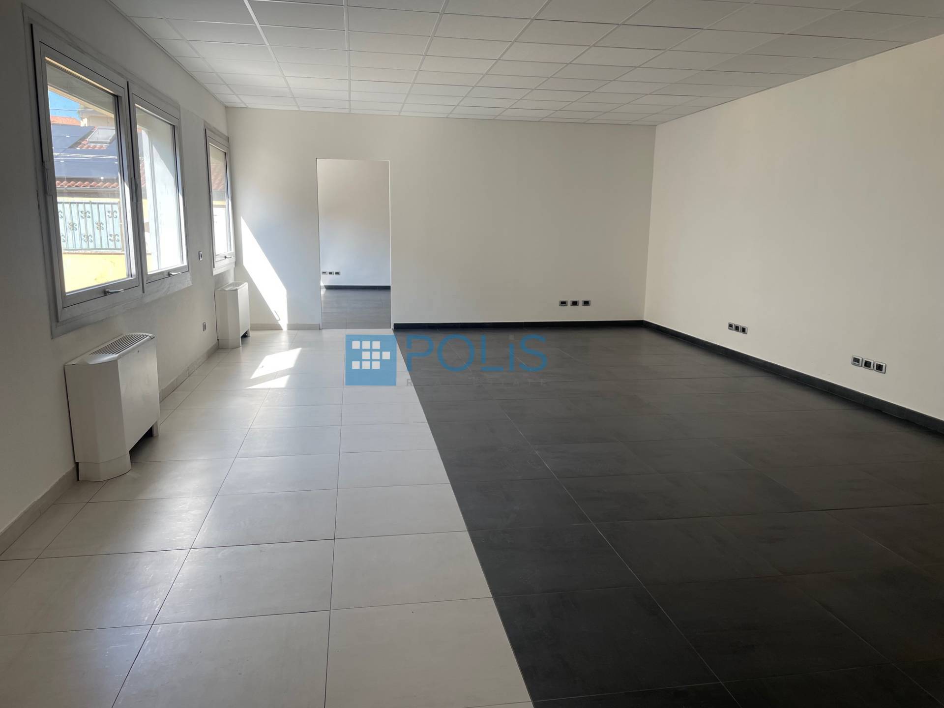 Gli spazi interni offrono una accogliente zona reception, un ufficio direzionale separato e un ampio open space luminoso, ideali per studi professionali o aziende che vogliono combinare funzionalità e comfort.